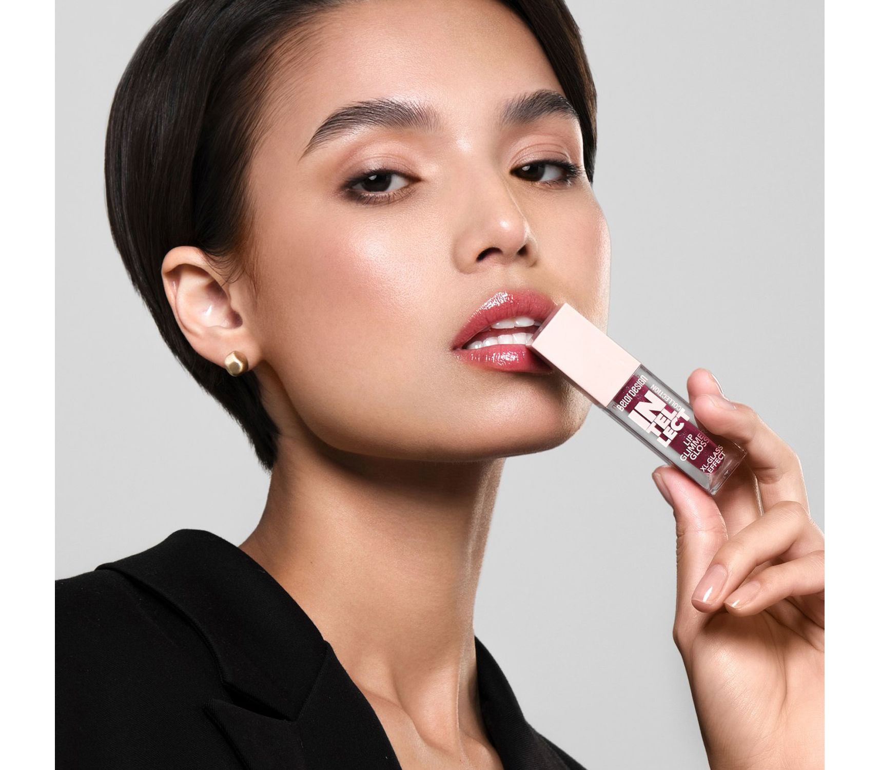 Наносите соло для эффекта «glass-lips» или поверх помады для футуристичного акцента.