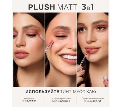 Тинт-мусс 3 в 1 для губ, щек и век "PLUSH MATT" тон: 303, peachy peach (10327382)